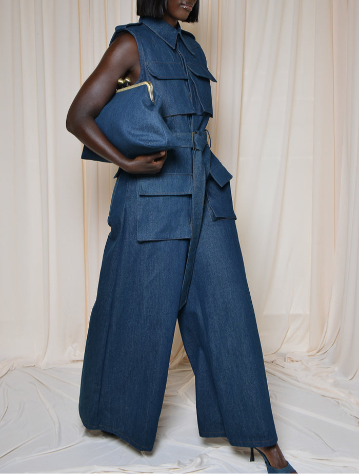 The denim clutch bag offers lots of space to carry necessities with style.